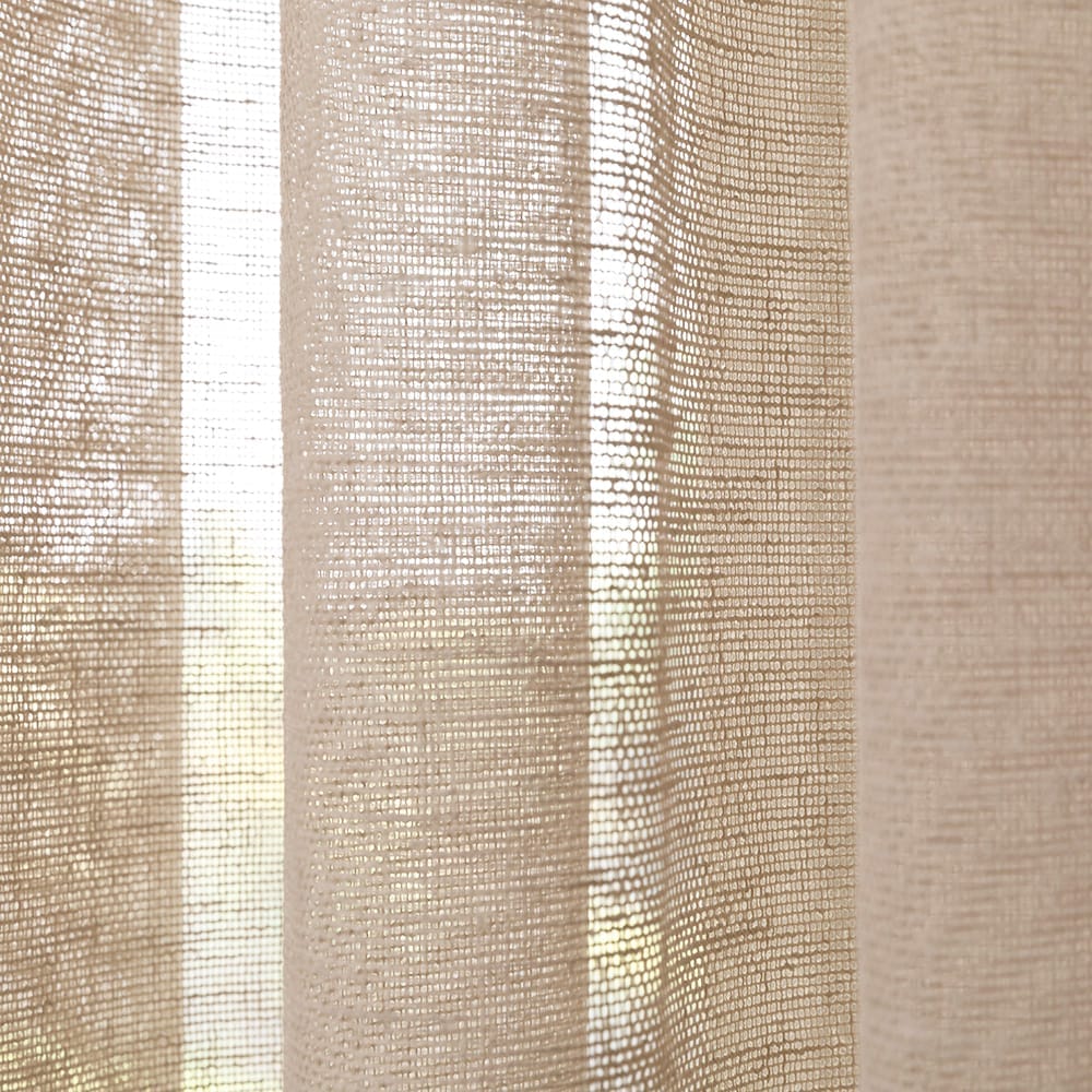Deze kamerhoge linnenlook inbetween heeft een matte uitstraling, waardoor deze zich uitstekend leent voor een inrichting met landelijke of industriële uitstraling. De grove weving geeft een extra natuurlijke look. Deze transparante stof is makkelijk in onderhoud. Tevens is deze stof deels gemaakt van gerecyclede garens. De Birgit is verkrijgbaar in negen mooie pastelkleuren. Ook is deze als 320cm hoog verkrijgbaar, en dus zeer geschikt voor hogere ruimtes. De onderzijde van de stof is voorzien van een verzwaringskoord waardoor er geen zoom in hoeft en de stof prachtig valt. Deze stof is Oeko-tex gecertificeerd.