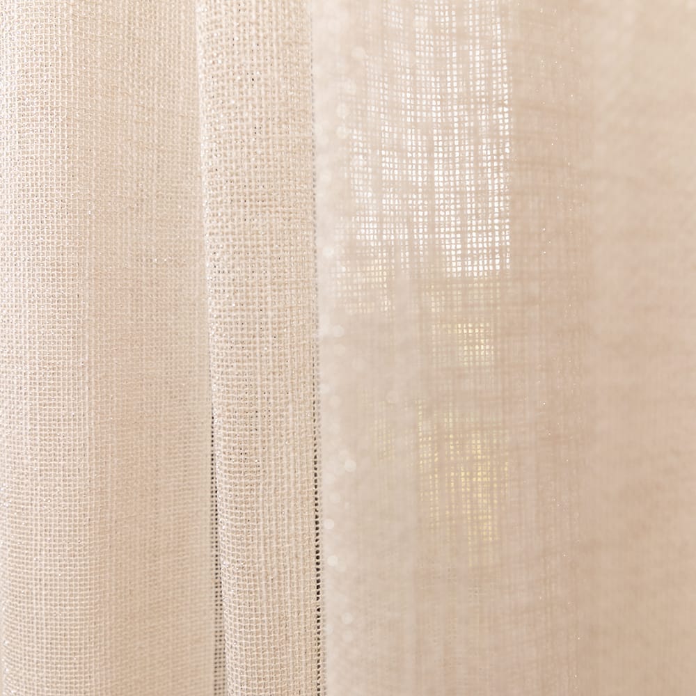 Duurzaamheid en luxe gaan hand in hand bij Divine. De subtiele glittering is gelijkmatig verdeeld over deze transparant. De combinatie van het glittergaren met de natuurlijke uitstraling, gecreëerd door de slubgarens in verticale richting, is perfect voor wie niet kan kiezen tussen een chique look en een linnenlook. Divine is geschikt voor alle plooitypes en de onderkant van de stof is afgewerkt met een verzwaringskoord. Je kan kiezen tussen verschillende zachte neutrale kleuren, voor een warme auberginekleur of voor donker antraciet. Evenaar een goddelijk interieur met Divine gordijnen!