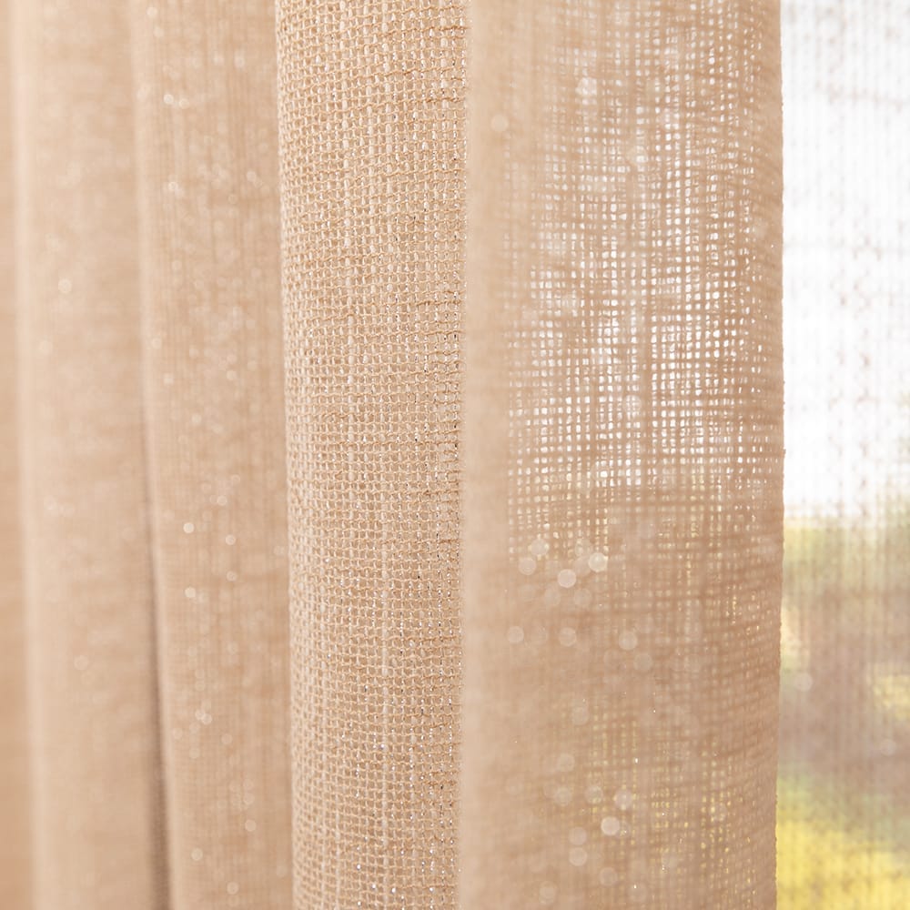 Duurzaamheid en luxe gaan hand in hand bij Divine. De subtiele glittering is gelijkmatig verdeeld over deze transparant. De combinatie van het glittergaren met de natuurlijke uitstraling, gecreëerd door de slubgarens in verticale richting, is perfect voor wie niet kan kiezen tussen een chique look en een linnenlook. Divine is geschikt voor alle plooitypes en de onderkant van de stof is afgewerkt met een verzwaringskoord. Je kan kiezen tussen verschillende zachte neutrale kleuren, voor een warme auberginekleur of voor donker antraciet. Evenaar een goddelijk interieur met Divine gordijnen!