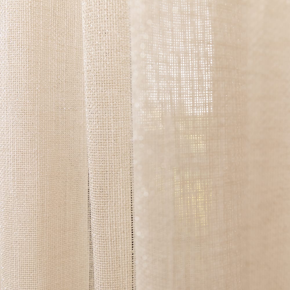 Duurzaamheid en luxe gaan hand in hand bij Divine. De subtiele glittering is gelijkmatig verdeeld over deze transparant. De combinatie van het glittergaren met de natuurlijke uitstraling, gecreëerd door de slubgarens in verticale richting, is perfect voor wie niet kan kiezen tussen een chique look en een linnenlook. Divine is geschikt voor alle plooitypes en de onderkant van de stof is afgewerkt met een verzwaringskoord. Je kan kiezen tussen verschillende zachte neutrale kleuren, voor een warme auberginekleur of voor donker antraciet. Evenaar een goddelijk interieur met Divine gordijnen!