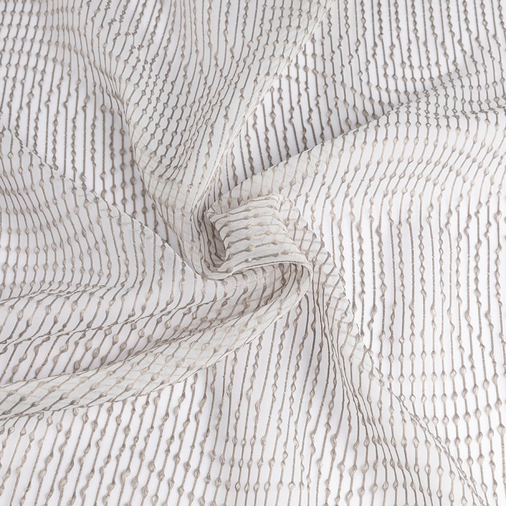 Expert is een kamerhoog brandvertragend chique transparant gordijn met een fancy garen wat een prachtig dessin creëert. De 3D textuur van de stof oogt luxe en ze heeft 3 mooie basic kleuren in het palet. Deze kamerhoge stof is deels gemaakt van gerecyclede garens afkomstig van PET flessen en bevat 2 flessen per vierkante meter. Deze stof is Oeko-Tex en GRS gecertificeerd. Expert straalt luxe uit en biedt voldoende privacy. Ze heeft een verzwaringskoord aan de onderkant zodat ze soepel valt en er geen zoom in hoeft. Prachtig op een wave confectie.