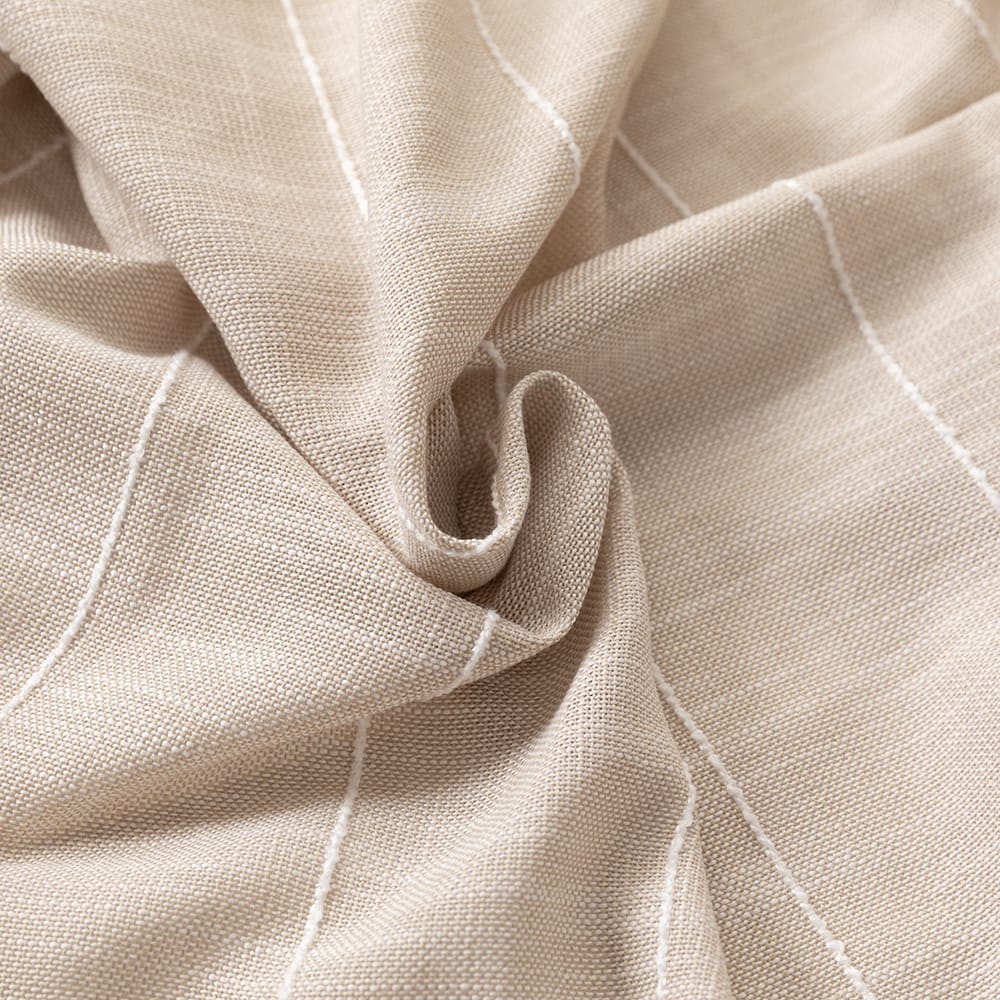 Latte brengt de warmte van een kop koffie direct naar je interieur. De lichte, natuurlijke kleuren worden aangevuld door verfijnde witte lijnen, die doen denken aan de romige melk laag in een perfect gezette latte. Deze subtiele details voegen een rustige, verfijnde sfeer toe aan elke ruimte. De stof heeft bovendien een linnenlook, wat een extra natuurlijke uitstraling geeft en is kamerhoog.