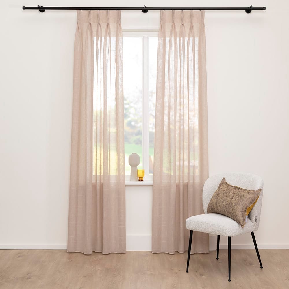 Secure is een antibacteriële inbetween linnenlook met een groot criss cross slub effect in de weving. Antibacteriële gordijnen zorgen ervoor dat de groei van bacteriën en schimmels verminderd en verspreiding voorkomen wordt, het leefklimaat gezonder is en de gordijnen een langere levensduur hebben. Secure heeft een ruim kleurenpalet, is geschikt voor alle confectietypen en toepasbaar in bijna elk interieur. Ook mooi met een border. De stof is kamerhoog en deels gemaakt van gerecyclede garens. Er worden 6 PET flessen per m2 in de stof verwerkt en de stof is Oeko-tex gecertificeerd. Het gordijn kan zonder naden geconfectioneerd worden en heeft een verzwaringskoord aan de onderkant.