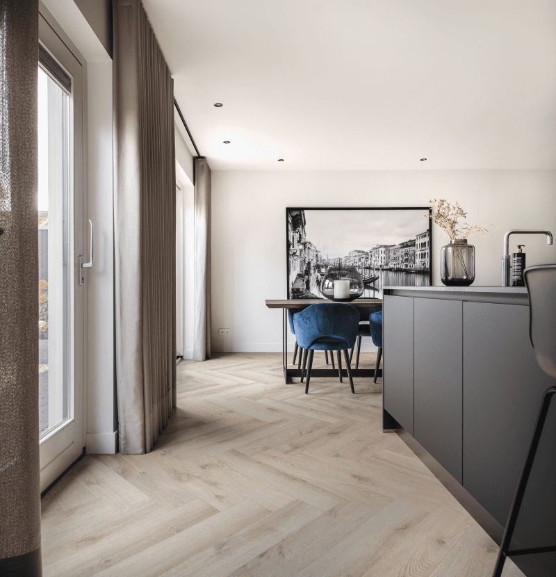 Ontdek de Therdex Original² Visgraat 7541 vloer: een prachtige PVC vloer met een eigentijds visgraatpatroon. Deze duurzame vloer voegt een luxueuze uitstraling toe aan uw interieur en is gemakkelijk te onderhouden. Kies voor tijdloze charme en functionaliteit met deze hoogwaardige vloer.